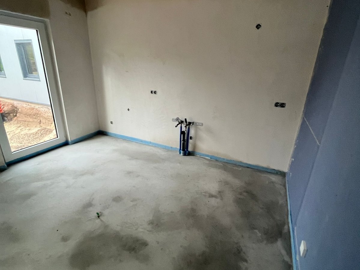 Der offen gestaltete Wohn-, Koch- und Essbereich ist das Zentrum des Familienlebens. Hier wird gemeinsam gekocht, gelacht und entspannt. Die bodentiefen Fenster lassen nicht nur viel Licht hinein, sondern ermöglichen auch vielfältige Zugänge zum Garten. Ob von der Küche oder vom Sofa aus, Ihre Wohlfühloase im Grünen ist stets nur ein paar Schritte entfernt. Besonders praktisch und platzsparend ist die integrierte Garderobe im Flur. Außerdem gibt es verschiedene Wohnbereiche, die auf Wunsch mit (Glas-)Türen abgetrennt werden können.
