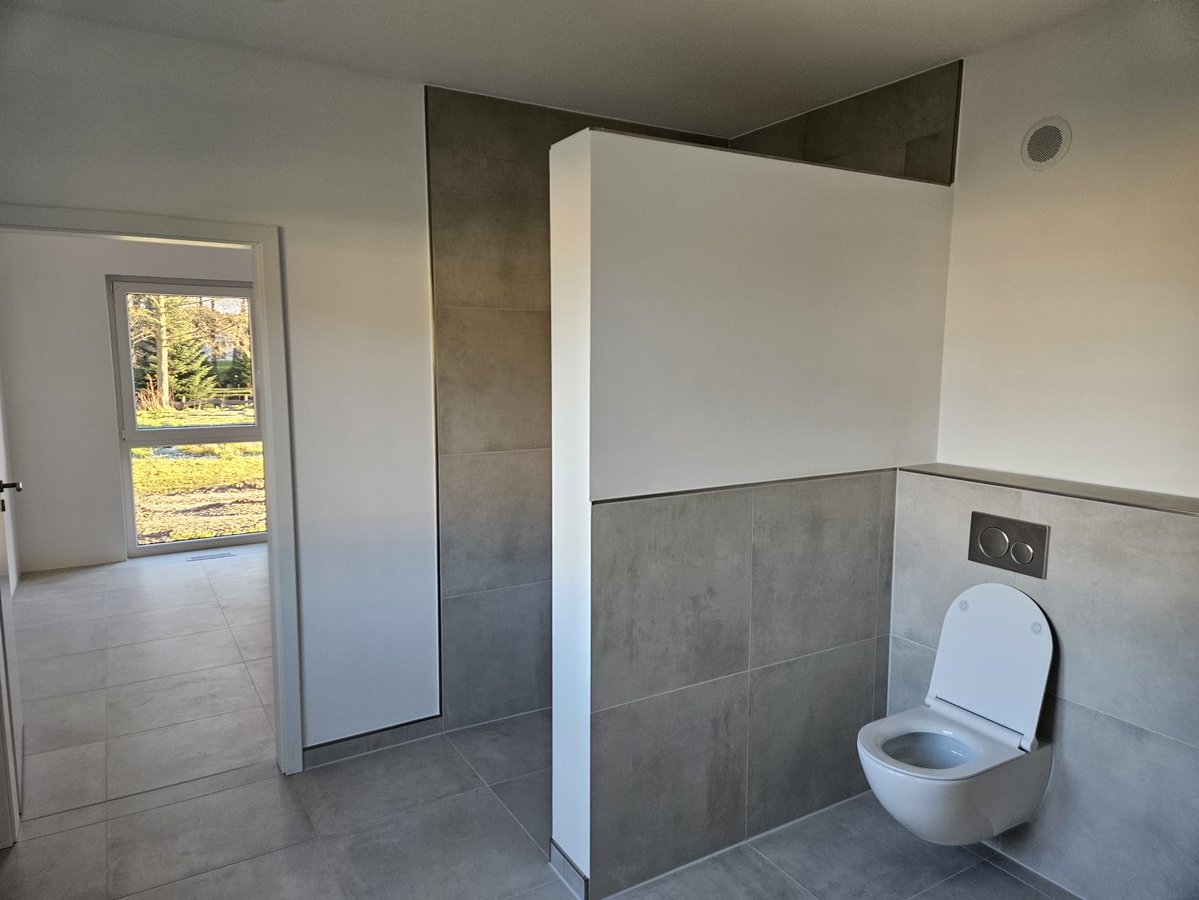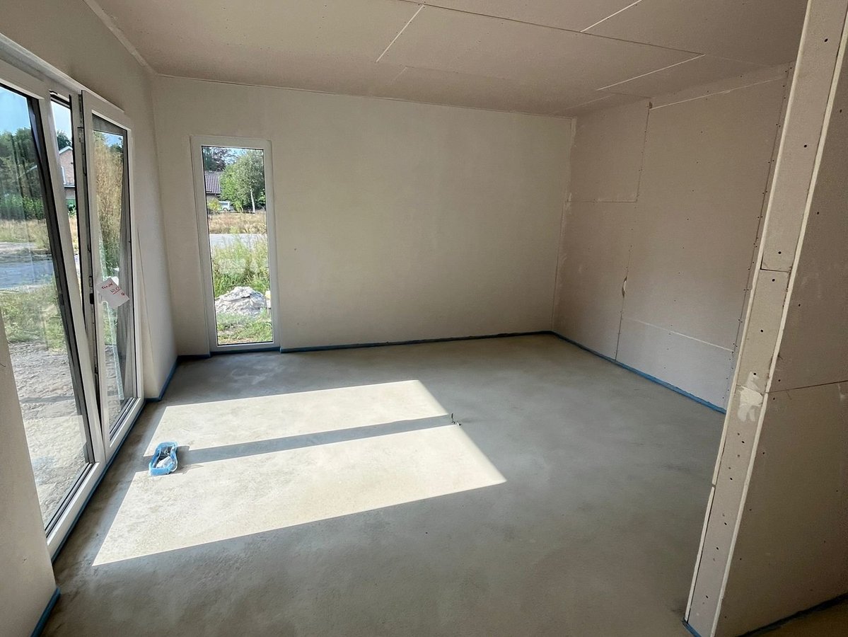 Zusätzlich bietet Ihnen der Bungalow 128 ein geräumiges Schlaf- und Kinderzimmer, ein großes Bad und eine weitläufige Küche mit praktischem Abstellraum. Das traumhafte Wohnzimmer mit seinen großen Fenstern ist der perfekte Ort zum Entspannen, bietet freien Blick in Ihren Garten und mit wenigen Schritten sind Sie auf Ihrer Terrasse im Grünen.
