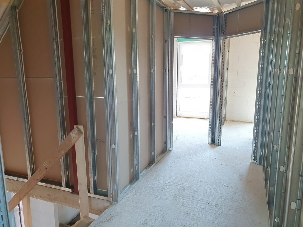 Im Obergeschoss befinden sich vier große Räume – ideal für Ihre Schlafzimmer sowie für Ihre Kinder und Gäste. Außerdem ist auch noch Platz für ein Arbeitszimmer.