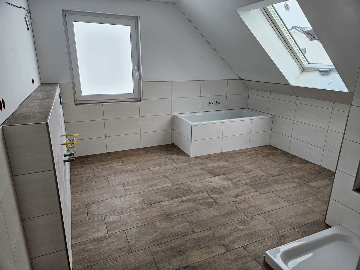 Über die offene Treppe gelangen Sie ins Obergeschoss, in dem drei geräumige Zimmer auf Sie warten. Im Badezimmer können Sie sich Ihre kleine Wellness-Oase einrichten.
